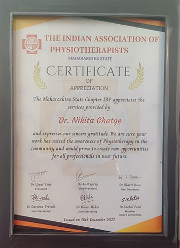 Dr. Nikita Ghatge, Post Graduate in Physiotherapy has worked with Balabhai Nanavati hospital, Physiotherapy department, with an experience to deal with any kind of painful conditions like neck pain, back pain, shoulder pain,fracture etc, also is specialised in Sports injuries and work related injuries and has worked with many sports teams, atheletes and sports persons too for their various problems. Also a Certified Manual therapist, Neurokinetic therapist, Prenatal-postnatal trainer, Cupping and dry needling practitioner.